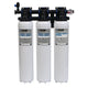 - Triple filter head manifold assembly contains serial coupling providing two separate outlets where upper port provides water with scale control and the lower port provides water without scale control
