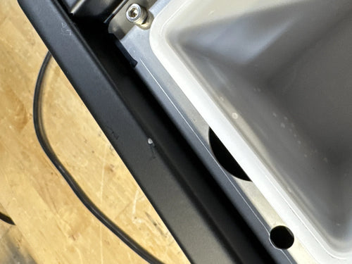 The machine has some scratches on the cup tray, The machine also has a paint chip on the top of the left side panel close to the water tank.