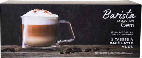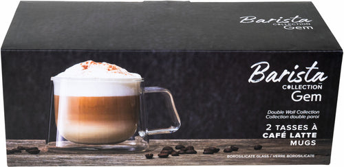 The Barista Gem Caffe Latte Mugs from Safdie & Co are made from hand blown borosilicate glass. Hand blowing from high quality makes these double walled glasses thinner, lighter and capable of withstanding thermal shock.