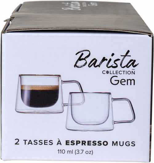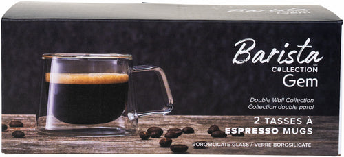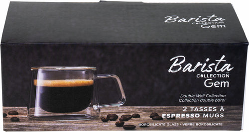 The Barista Gem Espresso Mugs from Safdie & Co are made from hand blown borosilicate glass. Hand blowing from high quality makes these double walled glasses thinner, lighter and capable of withstanding thermal shock.