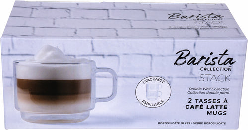The Barista Stack Caffe Latte Mugs from Safdie & Co are made from hand blown borosilicate glass. Hand blowing from high quality makes these double walled glasses thinner, lighter and capable of withstanding thermal shock.