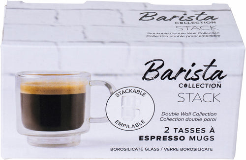 The Barista Stack Espresso Mugs from Safdie & Co are made from hand blown borosilicate glass. Hand blowing from high quality makes these double walled glasses thinner, lighter and capable of withstanding thermal shock.