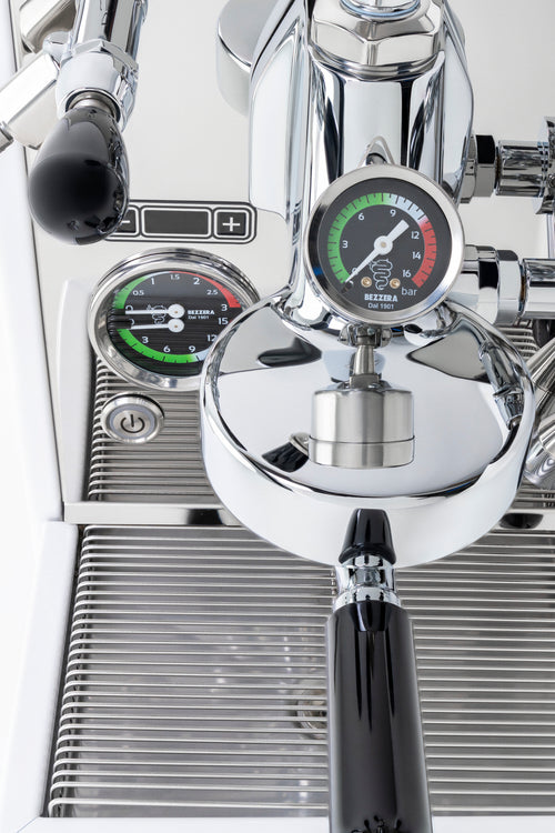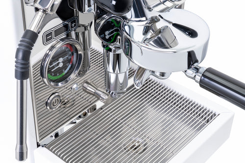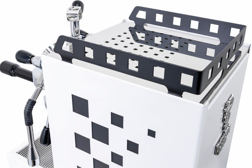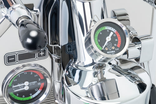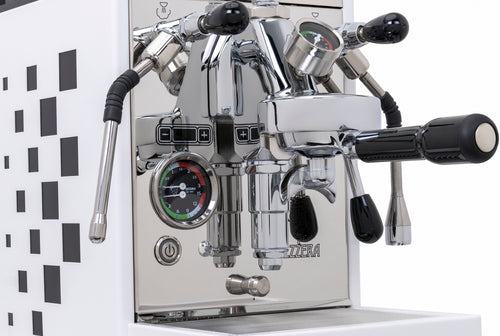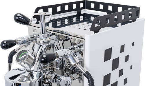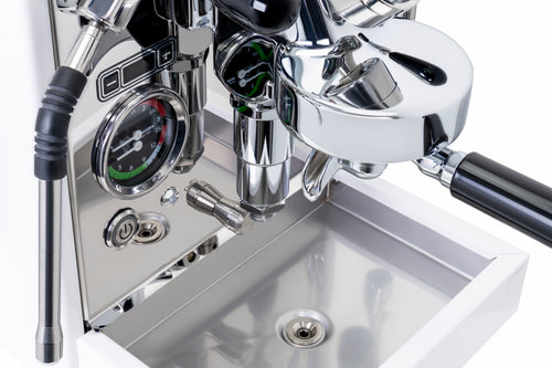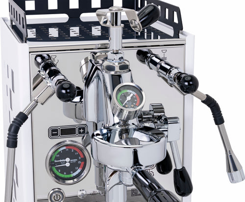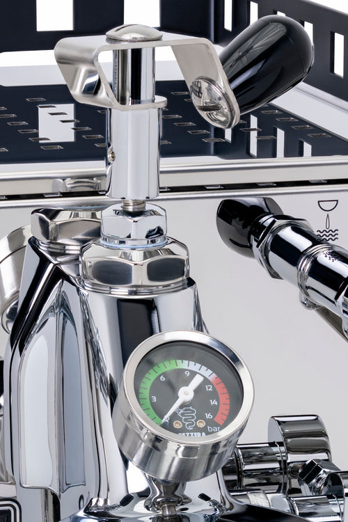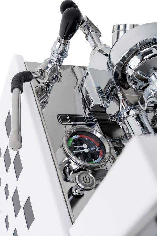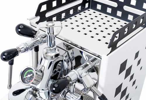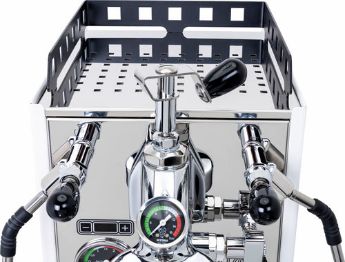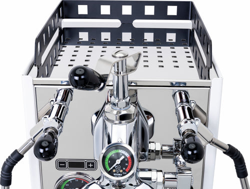 Dual pressure gauges make reading the boiler and brew pressure easy, while unique box cutouts on the side panels add an extra style.