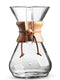 The Chemex coffee brewer produces a very clean, refreshing cup of coffee, due to the conical shape of the top of the brewer as well as thick, natural paper filters which fold to a point. The coffee brews in a thin stream from this single point, creating a clean solution that often highlights the fruity notes of exceptional fresh-roasted coffee.The brewer itself couldn't be simpler. A glass carafe with a cone-shaped top and comfortable leather-tied wooden collar. Chemex's elegant design has won it a permanent spot in the collections of the Museum of Modern Art, the Smithsonian and the Philadelphia Museum of Art. It makes it a beautiful serving vessel as well as a brilliant brewer.