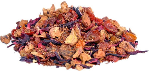 Ahh, those Holiday flavours are great at any time of year. Healthy Rooibos with uplifting orange, cinnamon, roasted apple and vanilla notes. One tea to pair with a blanket and a good book. Great to boost the immune system. Ingredients : Rooibos, apple chunks, hibiscus blossoms, rose hip, almonds, cinnamon, natural flavour, vanilla pieces.