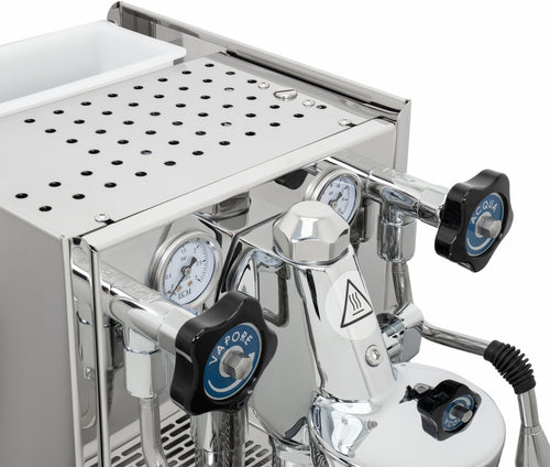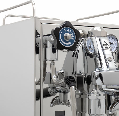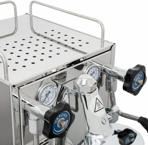Attention to detail extends to the user experience, with two ergonomically designed portafilters featuring a weight-balanced shape and angled grip. The removable cup warming tray allows easy access to the generous 2.8-litre water tank. For those who like to fine-tune their espresso, the machine offers easy access to the expansion valve for individual brew pressure adjustment.