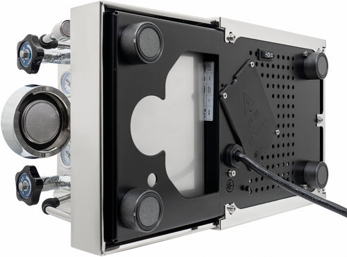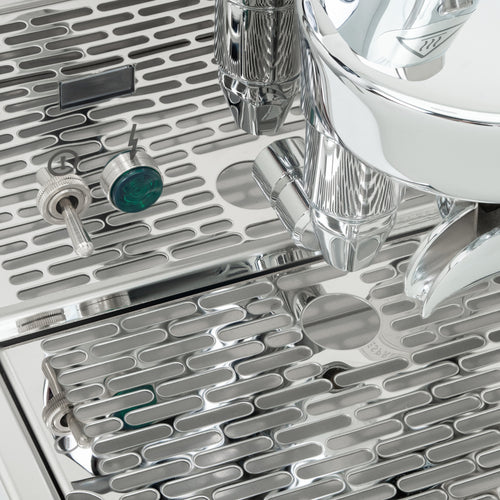 Attention to detail extends to the user experience, with two ergonomically designed portafilters featuring a weight-balanced shape and angled grip. The removable cup warming tray allows easy access to the generous 2.8-litre water tank. For those who like to fine-tune their espresso, the machine offers easy access to the expansion valve for individual brew pressure adjustment.