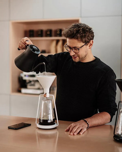 A unique coffee maker, Goat Story's Gina offers you three distinct ways to brew your coffee. This innovative product features a precise valve that controls the water flow to each drop to ensure unparalleled quality.