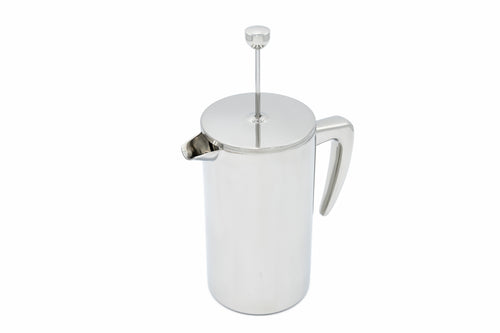 The DUBLIN stainless steel French press offers durability and style. It is double wall insulated and made from 18/8 stainless steel. Additionally, it’s designed to keep your coffee hot for long periods of time. The press exterior is a shiny mirror finish that is highly polished. Also, the DUBLIN has a one-liter (1000 ml/ 34 fl. oz) capacity perfect for making two to three large cups of coffee.