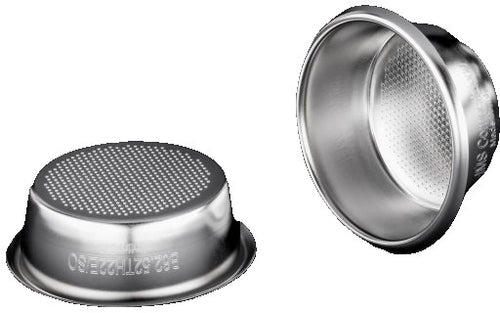 The IMS Precision Filter Basket is designed for use with Breville espresso machines. The basket is made from high-grade stainless steel and has a flat bottom with 499 circular holes with conical cross-sections. The edge diameter is 62.5mm and the height is 22mm. The filter basket is designed to hold 12 – 14 grams of ground coffee, perfect for a double shot of espresso. The basket is food-certified and is suitable for use with a tamper with a diameter of 53mm. It is compatible with Breville Barista series, The Bambino Plus, the Infuser, and the Duo temp pro