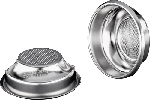The IMS Precision Filter Basket is designed for use with Breville espresso machines. The basket is made from high-grade stainless steel and has a flat bottom with 253 circular holes with conical cross-sections. The edge diameter is 62.5mm and the height is 23mm. The filter basket is designed to hold 8 – 10 grams of ground coffee, perfect for a single shot of espresso. The basket is food-certified and is suitable for use with a tamper with a diameter of 53mm.