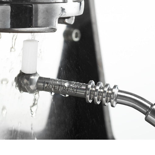 This cleaning brush has been newly developed by JoeFrex to be able to clean the brewing unit even with running water.
