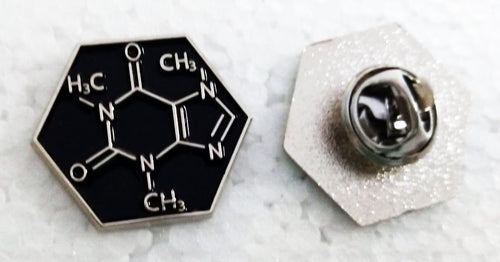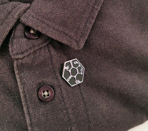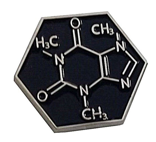 Be proud of being a coffee nerd with the JoeFrex Pin featuring the Caffeine molecule