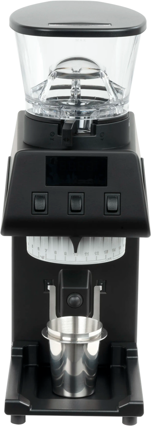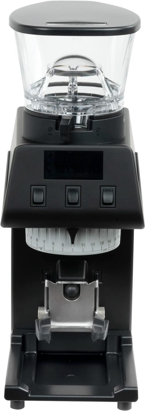 The grinder's thoughtful design includes three programmable buttons for precise dose control, along with an innovative magnetic portafilter fork that ensures secure, hands-free operation. Its stepped adjustment collar provides intuitive grind size control, allowing users to dial in their perfect shot with confidence. Whether used for on-demand grinding or single dosing, the Pico delivers consistent, fluffy grounds that showcase the full potential of your coffee beans.