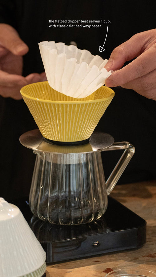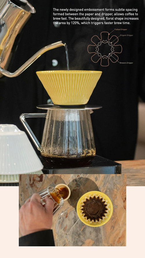 - A fast flowing, flat bed dripper that is heavily engineered to brew different