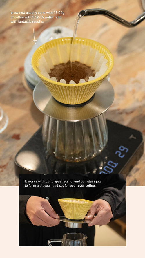 - It works with our dripper stand, and our glass jug to form a all you need set for pour over coffee.