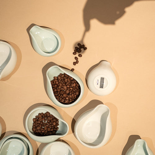 The tray is absolutely inspired by Cha He tea trays, which have been around for a very long time. Having collected a few, but being frustrated by using them with coffee, we came up with this bean dosing trays making sure they are easy and pleasurable to use as possible.Its wide mouth allows dosing beans in without them bouncing out and can also be used as a ground catcher to grind coffee into, and to comfortably remove any excess dose. It has a spout to help pour coffee beans directly into a grinder or ground coffee into a brewer (or both if you want!). We decided that two sizes - small to hold 30-40 grams or large to hold 60-80 grams - were better than trying to make something universal, so pick the one that suits your workflow. No one thought weighing and dosing coffee could enhance the coffee-making experience, but this tray is something we didn’t quite know we needed.