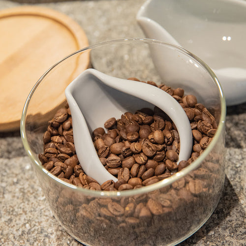 - The wide mouth allows putting beans in without them falling out.
