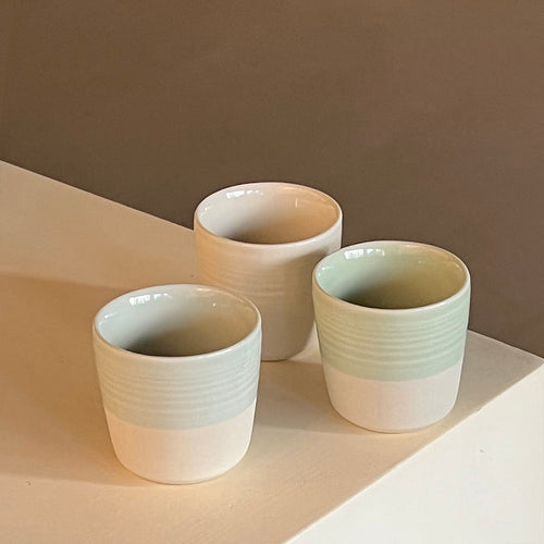 The competition cups was originally made in cream colour, and we have added 2, completely new celadon colours in blue and green to make it more fun. They will all launch during World Barista Championship which takes place in Boston in April, 2019.