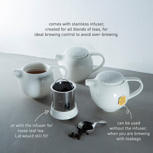 - comes with stainless infuser, created for all blends of teas, for ideal brewing control