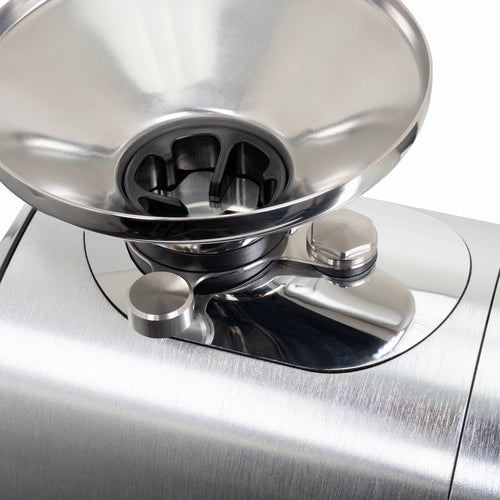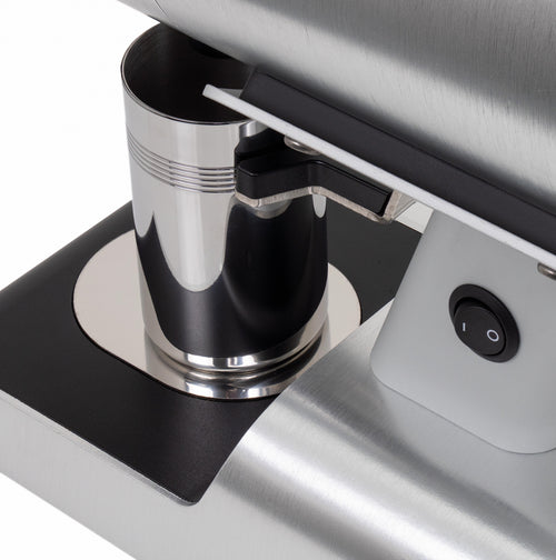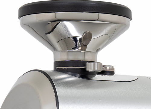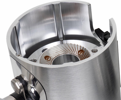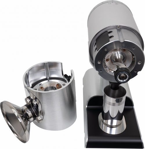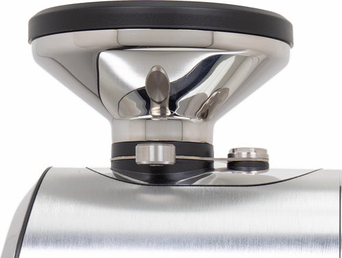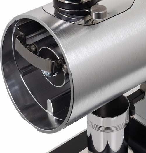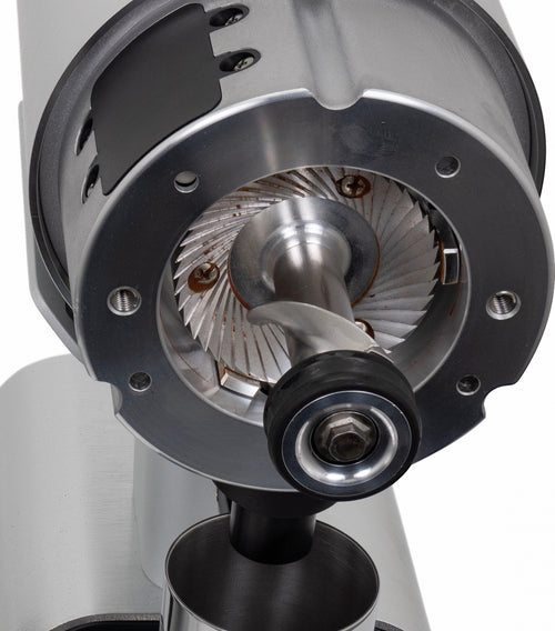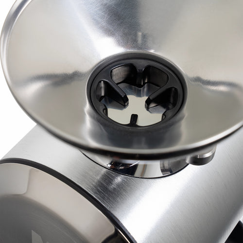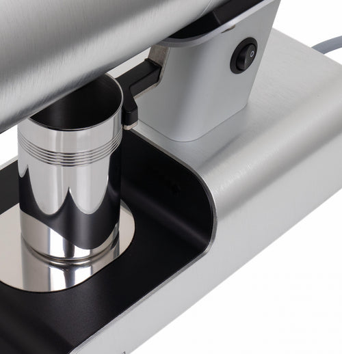 The grinder's practical features enhance the daily workflow - a magnetic 58mm dosing cup, an integrated dose finisher that collects residual grounds, and tool-free access to the grinding chamber for maintenance, all while preserving your grind settings. The robust 400W motor operates at an optimal 1400-1600 RPM, maintaining consistent performance while keeping operating temperatures stable.