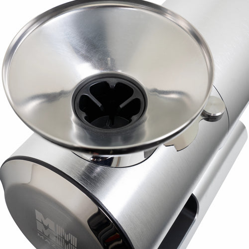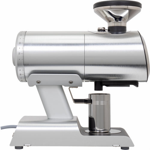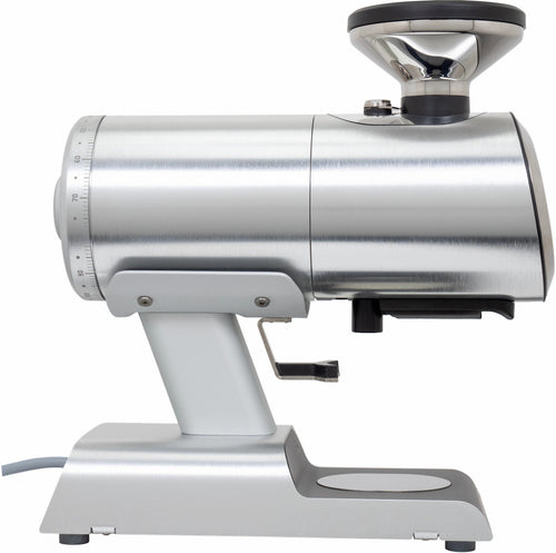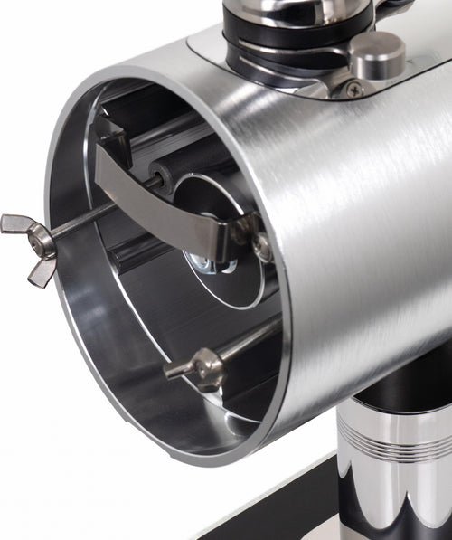 The Mazzer Philos stands as a thoughtful evolution in single-dosing grinder design, featuring vertically-mounted 64mm flat burrs that deliver exceptional grinding precision. This light commercial grinder combines Italian engineering heritage with modern functionality, housed in a sleek anodized aluminum body that occupies minimal counter space. The vertical burr orientation works in harmony with an innovative auger feed system, ensuring consistent particle distribution while virtually eliminating retention in the grinding chamber.
