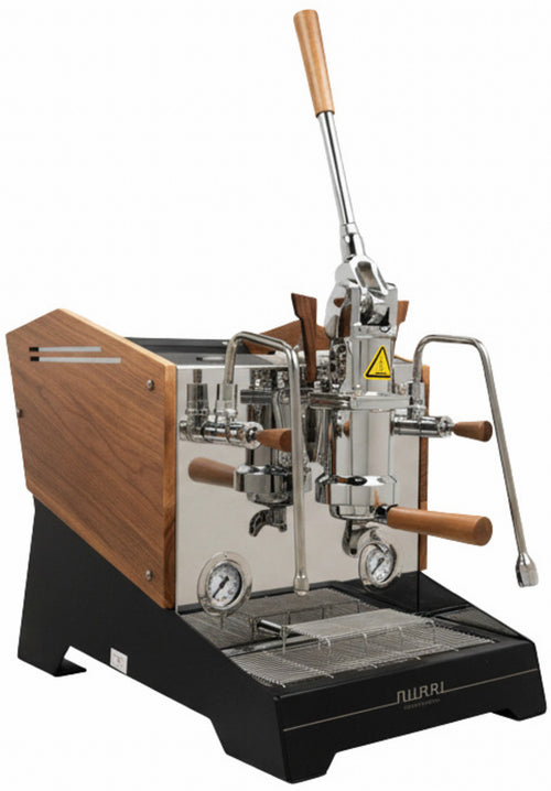 Nurri L-Type Leva S.A. Espresso Machine - Black w/ Walnut Wood