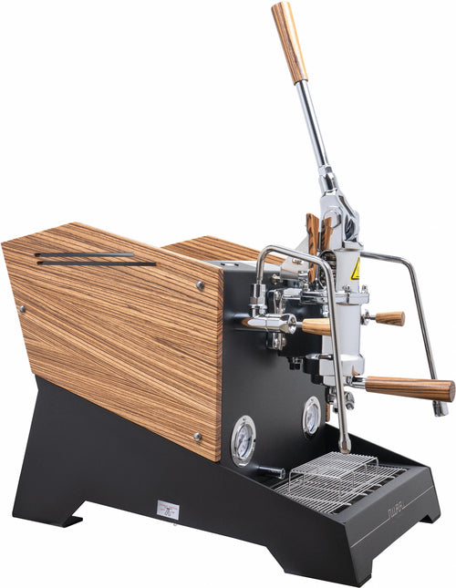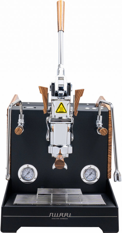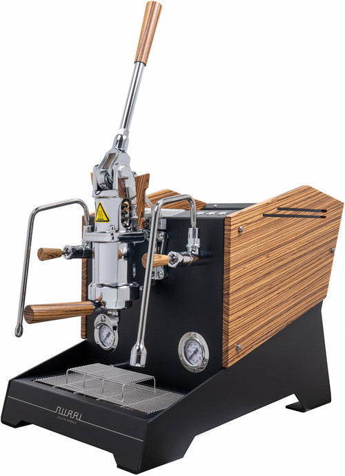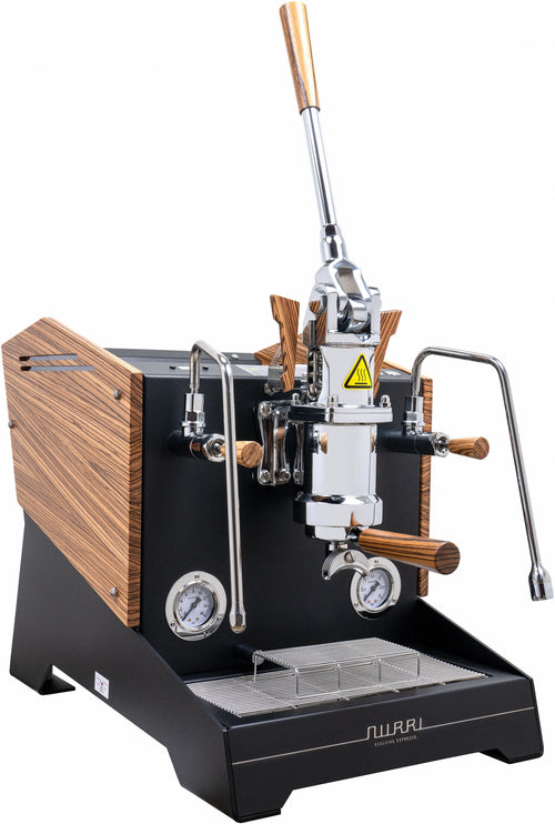 Nurri L-Type Leva S.A. Espresso Machine - Black w/ Zebra Wood