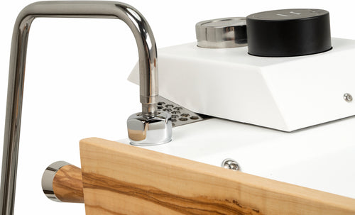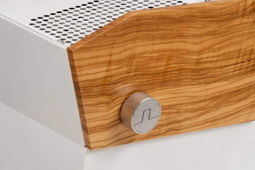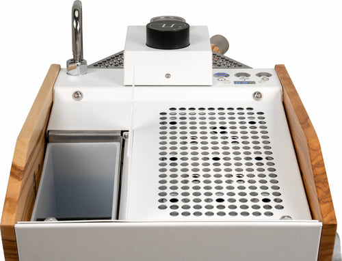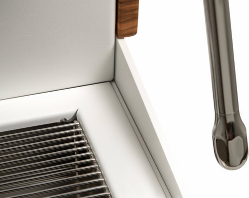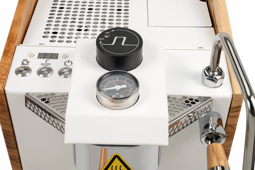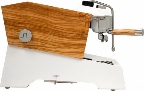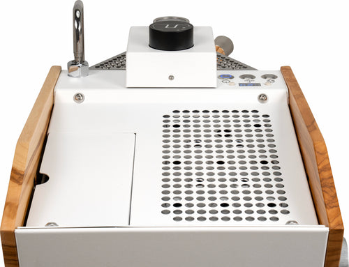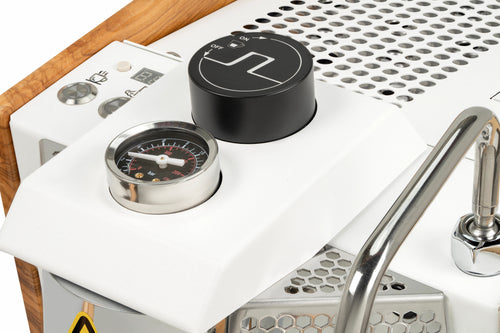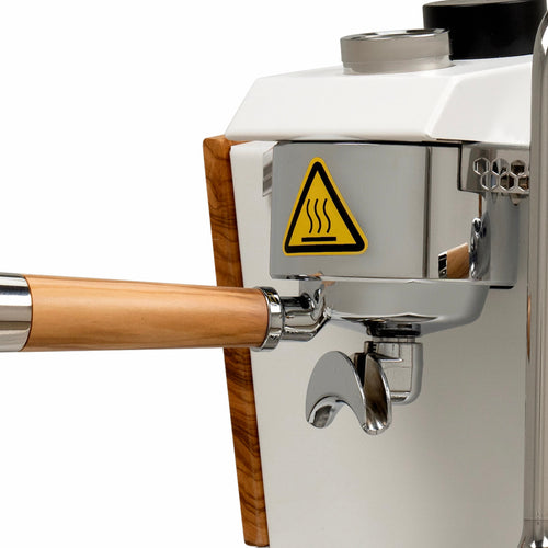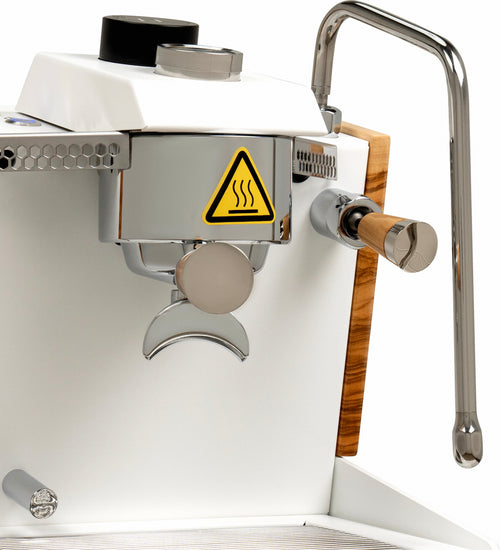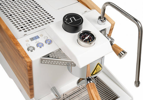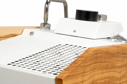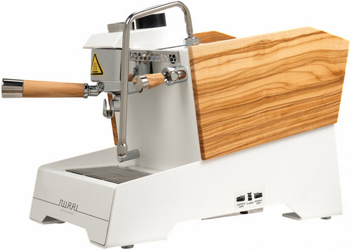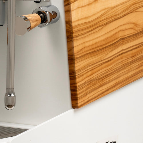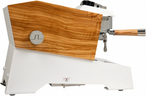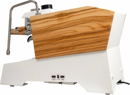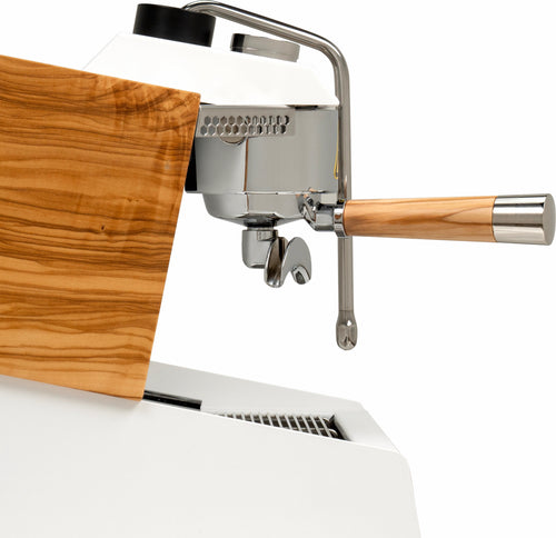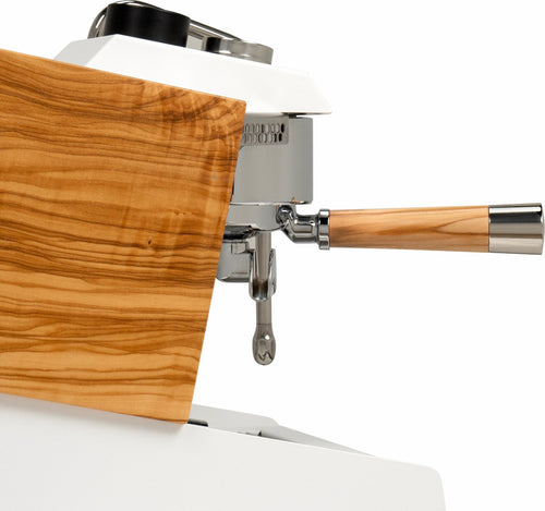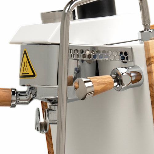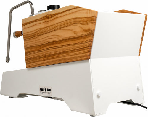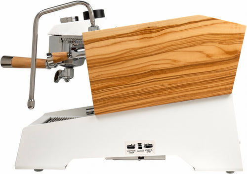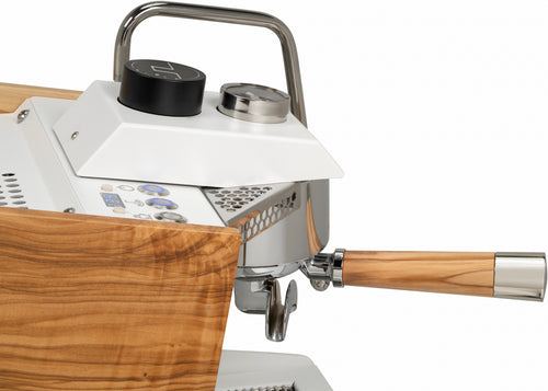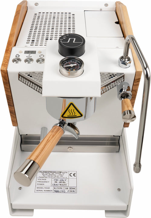 Italian craftsmanship meets modern customization with the Type R's distinctive wood accents. The rich olive wood panels create stunning contrast against the crisp white body, bringing natural warmth to your coffee corner. Quick heat-up times of just 8-10 minutes mean you're never waiting long for that perfect morning shot.