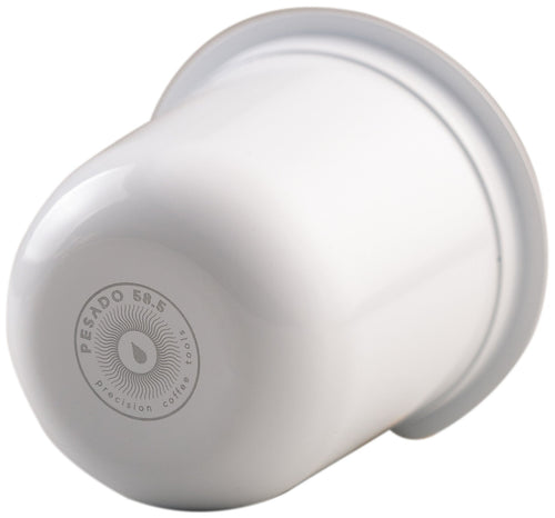 Revolutionize your coffee preparation with the Pesado Dosing Cup in White Gloss. This essential tool streamlines your workflow, allowing for efficient and precise dosing directly into the cup instead of the portafilter.