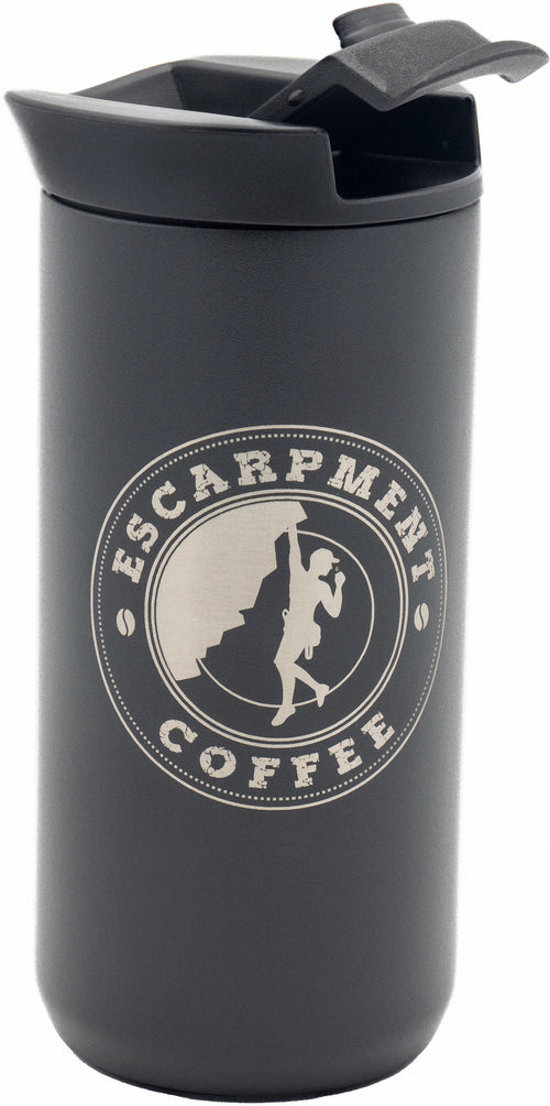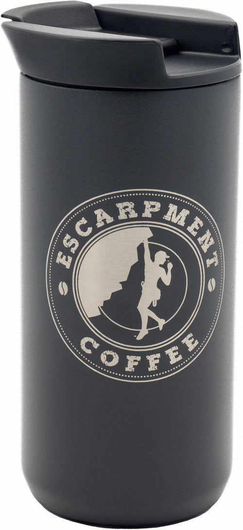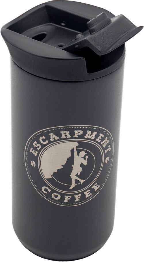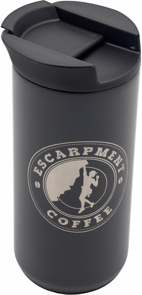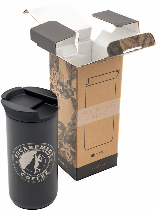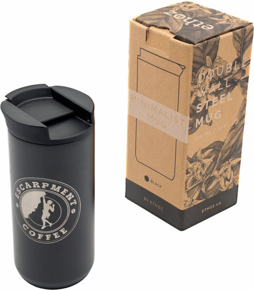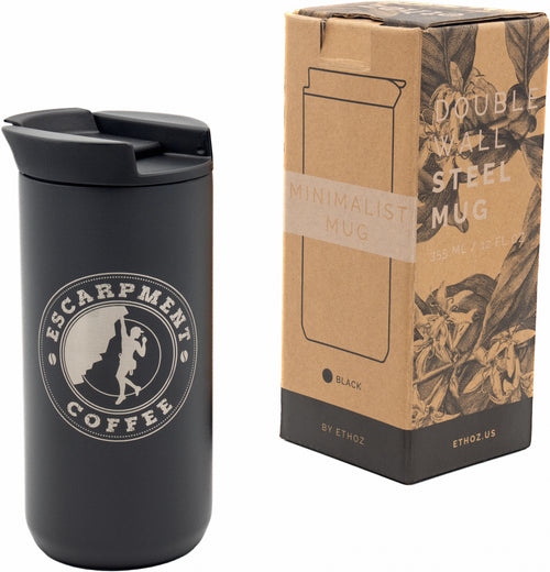 The Planetary Design Ethoz Minimalist Coffee Mug with Escarpment Coffee Logo combines sleek design with practical functionality, perfect for coffee enthusiasts who appreciate both style and substance. This 12 fl. oz. mug features a durable vacuum-insulated stainless steel body that keeps your favourite Escarpment Coffee roasts hot for hours. The sleek, minimalist design is enhanced by the distinctive Escarpment Coffee logo, adding a touch of brand loyalty to your daily brew.