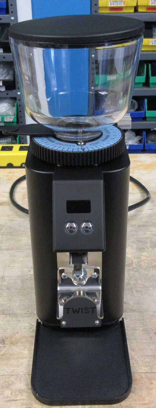 The Profitec Twist A54 is a precision-engineered espresso grinder that exemplifies German craftsmanship in a compact form. This grinder combines sophisticated digital programming with 54mm flat steel burrs, delivering consistent grinding results for espresso enthusiasts. The powerful 235W motor, mounted on soft rubber components, ensures quiet operation while maintaining grinding efficiency. With its stepless adjustment system and three versatile operating modes - Select, Barista, and Single Dose - the Twist A54 offers unparalleled control over your grinding experience.