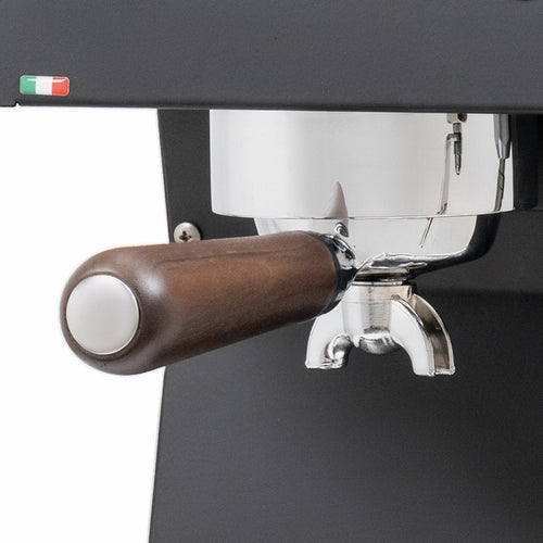 The machine's elegant design includes a wooden side knob for precise steam control, while the backlit control panel provides clear visibility of all functions. Available in a sophisticated matte black finish, the Pop Up is built with premium 304 stainless steel construction and features an anti-burn steam wand, making it both beautiful and practical. The 1.8L removable water tank and large drip tray ensure convenient daily operation, while the silent pump with thermal protection maintains a peaceful brewing environment.