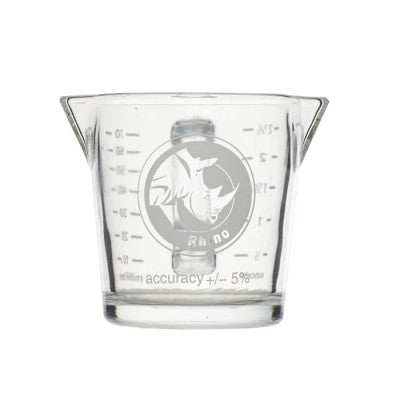 Rhino Coffee Gear has answered the call for a double-spouted shot glass that combines durability and functionality. This 70ml (2.4 ounce) handled shot glass is perfect for pulling double shots. The handle protects fingers from the heat of a freshly dropped shot. Graduated measurement marks make it so easy to get the shot right.