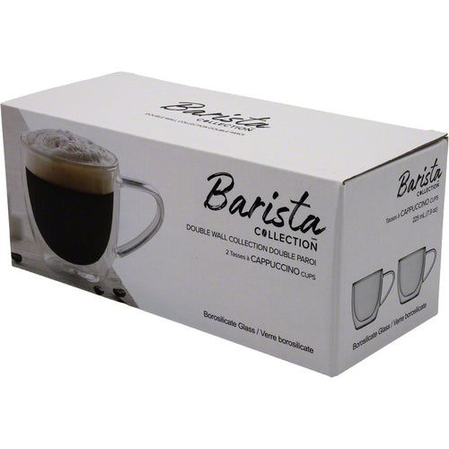 The Barista Cappuccino Mugs from Safdie & Co are made from hand blown borosilicate glass. Hand blowing from high quality makes these double walled glasses thinner, lighter and capable of withstanding thermal shock.