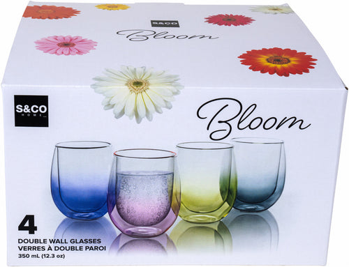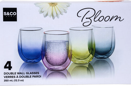 Elevate your beverage experience with the Safdie & Co. Bloom Double Wall Glasses set. This exquisite collection features four 350ml glasses in assorted colours, perfect for serving a variety of hot and cold drinks. Crafted from 100% borosilicate glass, these double-walled tumblers offer superior insulation, keeping your beverages at the ideal temperature while remaining comfortable to hold.