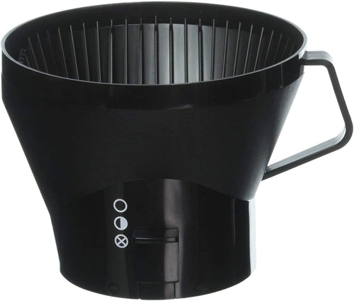 The brew basket for Technivorm Moccamaster brewers. It has a switch on the side to completely stop the flow of water, half-open for half-pot brewing, or full open for full-pot brewing. Fits the Technivorm KBT 741, CD Thermal and KBTS models.