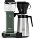 The Moccamaster KBT model features a thermal jug and a manual-adjust brew-basket which provides adjustability in how fast coffee flows into the jug. The KBT brews a full 10-cups pot of coffee in six minutes. The thermal jug will keep the coffee hot up to an hour. A travel lid is included to keep the coffee hot even longer.