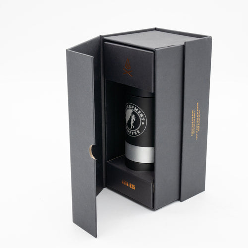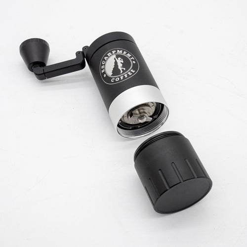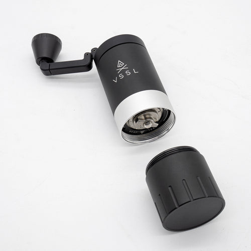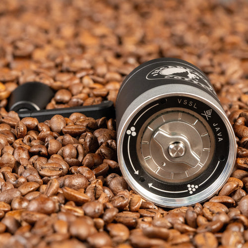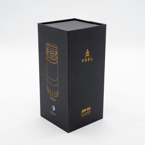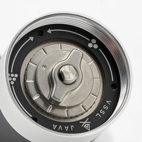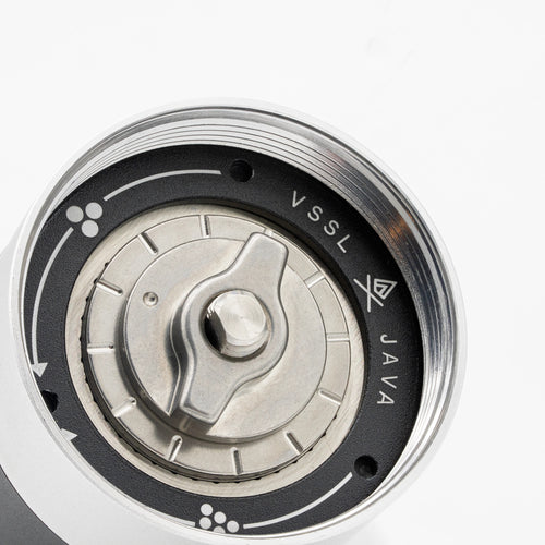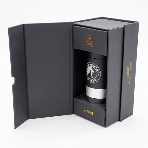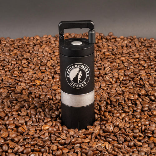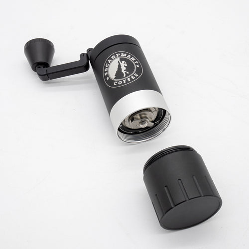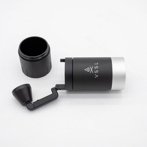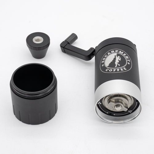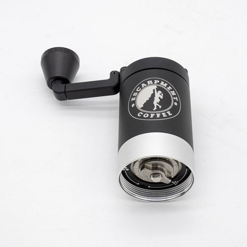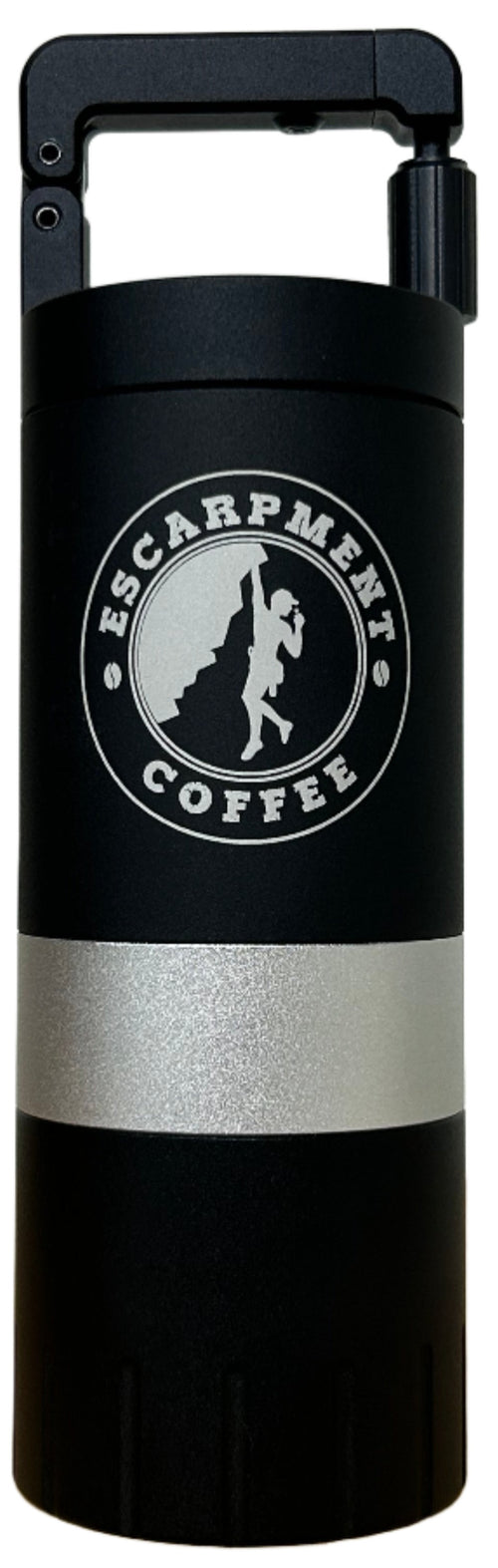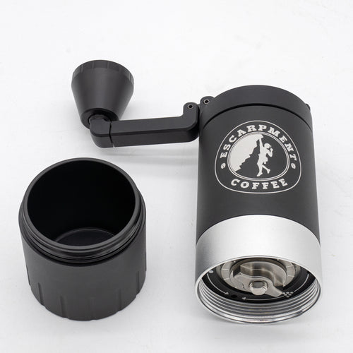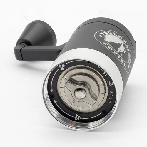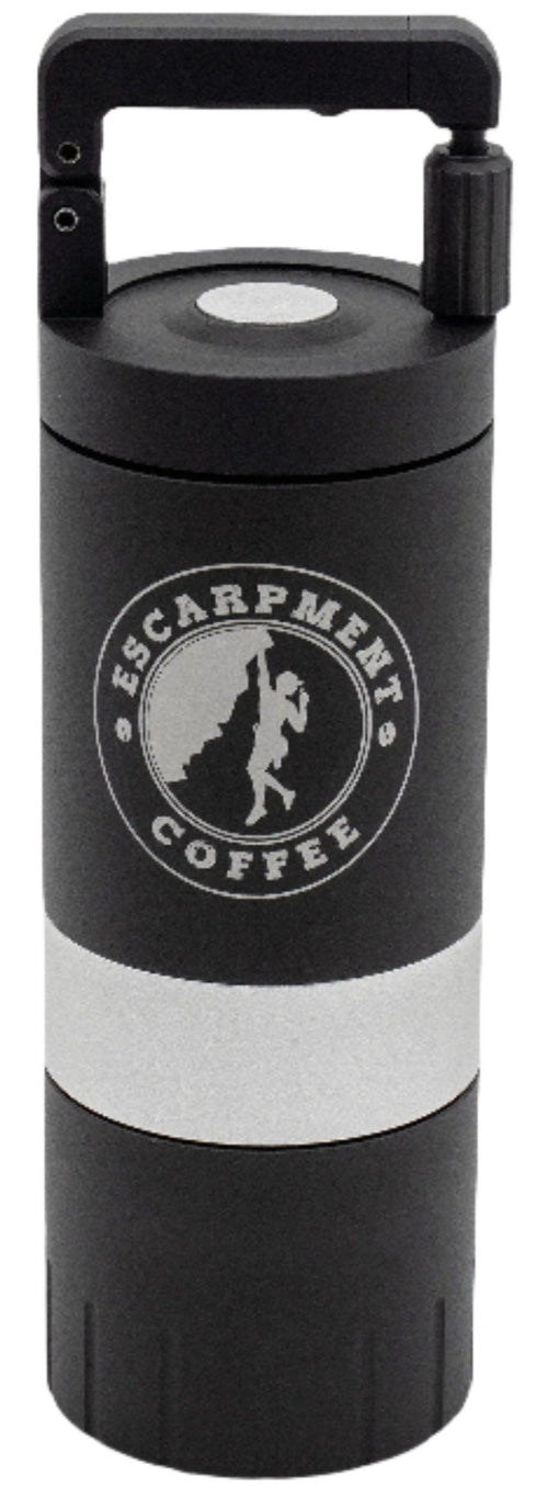 The VSSL Java G25 Hand Grinder w/ Escarpment Coffee logo is a premium manual coffee grinder designed for both coffee aficionados and adventurers. Crafted from aircraft-grade aluminum and stainless steel, this grinder is built to withstand the rigours of outdoor use while delivering a consistent and precise grind. The Java G25 features high carbon stainless steel conical burrs and dual bearings, ensuring the most consistent grind size of any hand grinder on the market.