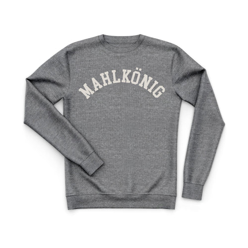 From the 1924 collection celebrating The First 100 Years of Mahlkönig, this vintage style grey sweater displays our wordmark logo screen-printed across the chest. Unisex sizing.