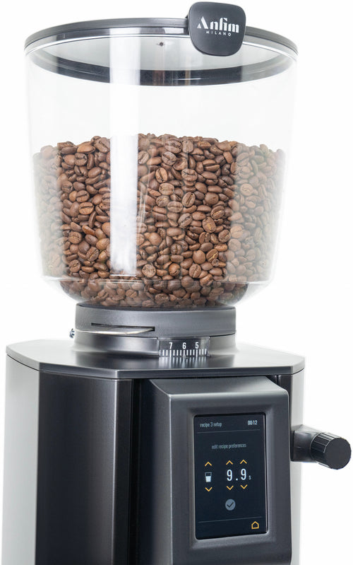 Another highlight is the Alba's grind adjustment mechanism. Utilizing Anfim's signature mechanical worm gear, this system allows for seamless and precise adjustments with just two fingers. This level of control ensures that baristas can achieve the perfect grind size for any type of coffee.