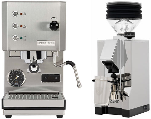 Profitec Go Espresso Machine - Brushed Stainless Steel + Eureka Mignon Zero - Chrome Combo