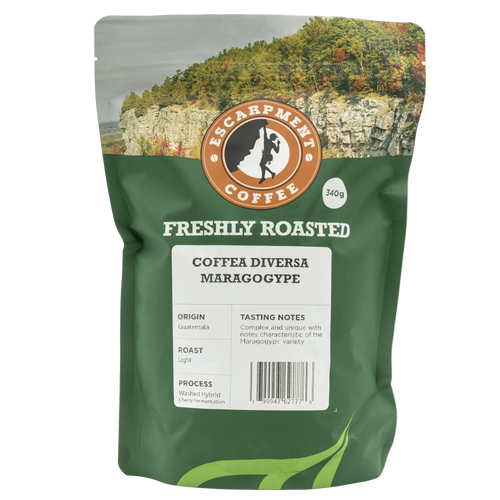 Founded in 2003 by Mr. Gonzalo Hernandez, Coffea Diversa represents a revolutionary approach to coffee cultivation - a botanical coffee garden maintaining consistent terroir across multiple coffee variants. Unlike traditional mono-varietal plantations, Coffea Diversa cultivates the world's largest private coffee collection with over 800 coffee species, botanical varieties, mutants, and cultivars in one garden. This particular Maragogype varietal from Jutiapa, Suchitan, grown at 1500 meters above sea level, undergoes a unique fully washed hybrid cherry fermentation process with 72 hours of aerobic fermentation. The result is a coffee with sweet and chocolaty aromas, velvety body, and delicate but assertive acidity. Beautifully balanced with hints of apricot and peach, this rare offering showcases the exceptional possibilities when biodiversity meets expert cultivation.