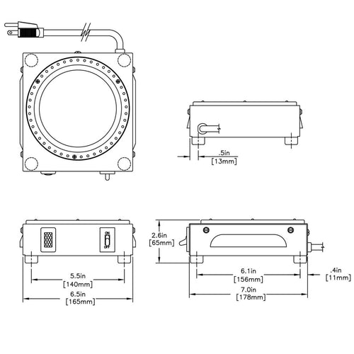 Dimensions: H 2.53" W 7.0" D 7.0"