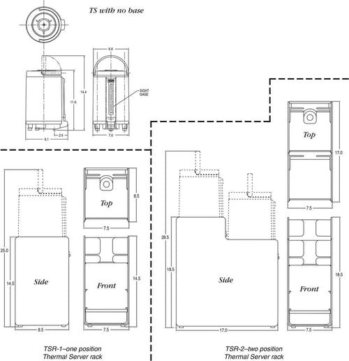 This durable and easy-to-clean product is made of plastic and can hold two 2.5-liter thermal servers without a base. With a weight of 7.7 lbs, it is lightweight and easy to move around.