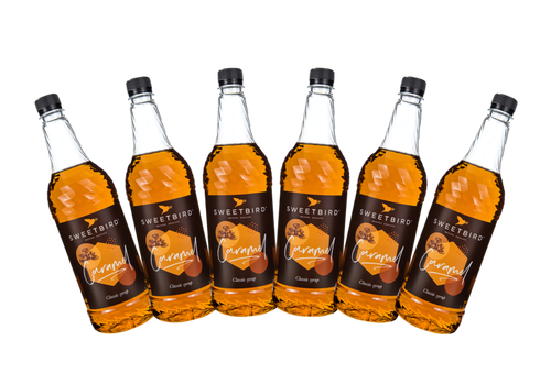 - 6 x 1 litre bottles of Sweetbird Caramel Syrup
