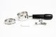 The new Cafelat all-in-one portafilter (International Patents Pending) is the first and only portafilter that is both regular and naked. Not only that but's it made entirely of stainless steel making it much easier to use than standard brass and easy to maintain clean. This version features a durable NBR (Nitrile Butadiene Rubber) handle instead of bakelite. Complete Portafilter Set (with gift box) includes - Portafilter body with NBR rubber handle and basket spring clip bottom plate with silicone o-ring, a spout and a fixing grub screw 1 x spout (wide double) 1 x 2mm allen key for fixing the grub screw 1 x spare silicon o-ring. Available for La Marzocco groups.